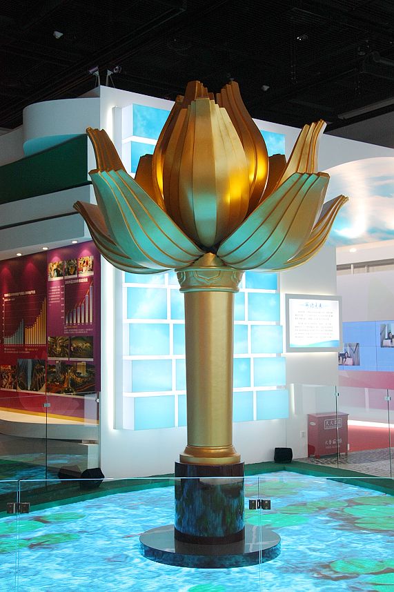 為慶祝澳門回歸祖國(guó)10周年,由澳門特區(qū)政府主辦的“澳門特別行政區(qū)10周年成就展”,12月12日起在首都博物館對(duì)公眾開放! ≡1400平方米的展廳內(nèi),劃分為“一國(guó)兩制”、家國(guó)情懷、成就平臺(tái)和10年歷程4個(gè)主題展區(qū)。展覽通過圖片、文字、模型和實(shí)物,配合新穎的多媒體影音技術(shù)效果,以活潑生動(dòng)的形式,形象地展示了澳門回歸10年來的發(fā)展與成就,以及城市風(fēng)貌和韻味。博物館前面擺放了一個(gè)碩大的橘黃色蓮花雕塑,特別引人注目。進(jìn)入大廳,迎面就是一塊大顯示屏,反復(fù)播放著澳門回歸時(shí)的交接儀式,七子之歌的音樂不絕于耳。整個(gè)展廳布置的恢弘大氣,正中為新穎別致的多媒體三維蓮花池,背后就是盛開的蓮花造型和壯觀的大三巴牌坊模型,整個(gè)場(chǎng)景再現(xiàn)了澳門的人文景觀。展覽共設(shè)“一國(guó)兩制”、“家國(guó)情懷”、“成就平臺(tái)”、“十年歷程”四個(gè)主題區(qū),集中反映了澳門回歸祖國(guó)10年來取得的驕人成就,生動(dòng)展示了在“一國(guó)兩制”方針指引下澳門煥發(fā)的生機(jī)活力和呈現(xiàn)的美好前景。據(jù)悉,為期1個(gè)月的展覽在北京結(jié)束后,還將赴內(nèi)地其它省區(qū)市巡回展出!