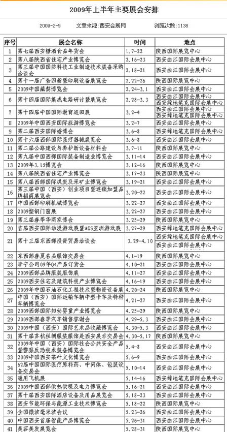 2009年西安上半年展會安排