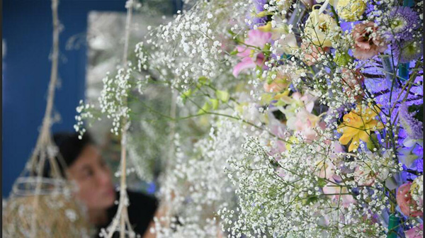 3月14日,花卉師在準(zhǔn)備展品。新華社記者 呂小煒 攝