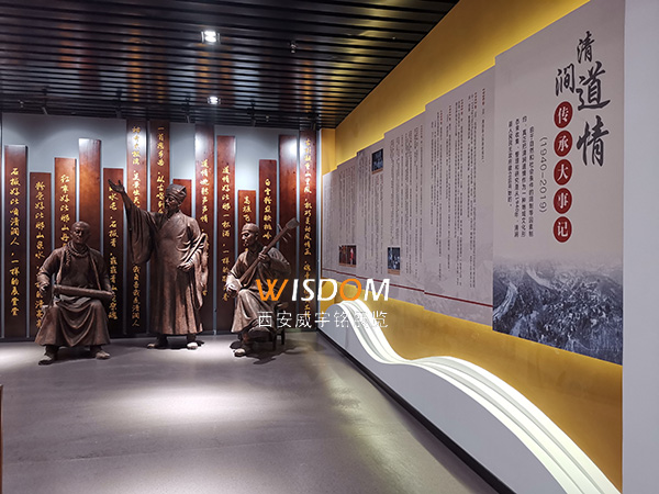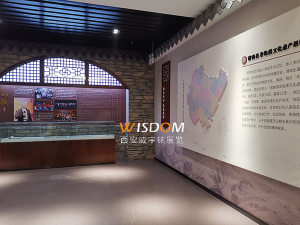 清澗縣非物質(zhì)文化遺產(chǎn)展覽館分為序廳,第一展廳“婉音似水,藝韻清澗”,第二展廳“厚土大德,人文清澗”,第三展廳“匠石運(yùn)金,技藝清澗”,第四展廳“薪火相傳,舌尖清澗”,以及結(jié)束語部分?臻g布局合理,色調(diào)符合傳統(tǒng)文化韻味,展示手段豐富多樣,為清澗非遺搭建了展示平臺(tái)和宣傳平臺(tái)。