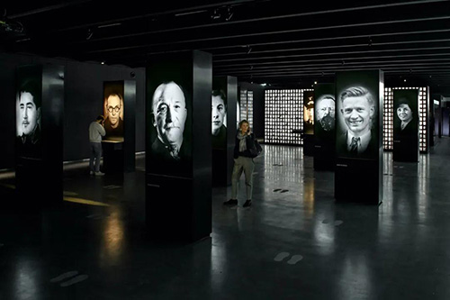 東四胡同博物館 ▲ 阿默斯福特集中營國家紀(jì)念館永久展覽 ▲ 精煉主題·提取設(shè)計語言,對展綱內(nèi)容主題關(guān)聯(lián)性元素提取轉(zhuǎn)化。 玉器博物館,取“玉”元素,突出、放大、簡化。舍棄復(fù)雜的造型,用半個玉環(huán)的形狀,加上天青色的顏色,并且巧妙的用高反射的地面材質(zhì)形成一虛一實加到一起得到完整的玉環(huán)圖像。如論材質(zhì)、顏色、形狀、質(zhì)感都貼合了展覽的主題。 03 場景營造·情緒渲染