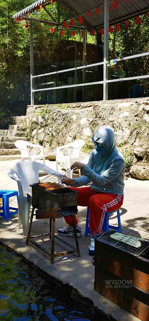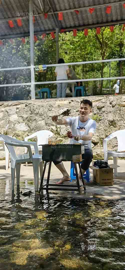 一下車,經(jīng)過雨水的洗禮后,山里的植物散發(fā)出淡淡的芳香,空氣格外清新。頓時感受到那遠離城市喧囂,安謐的舒適感,大家暫時忘掉工作歡聚在一起。同事們有些是燒烤達人,有些菜鳥小白,各自分工搭鍋灶、洗菜、切菜、串肉,彼此相互借鑒學習燒烤經(jīng)驗,互幫互助,關系更加的和諧融洽。