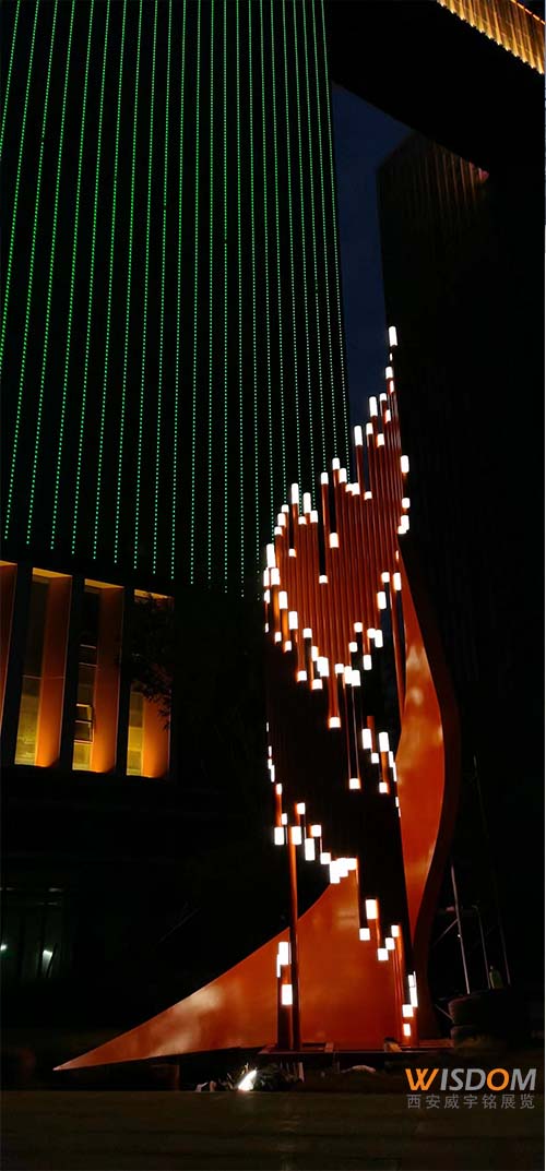 時(shí)間跨度8個(gè)多月,歷經(jīng)三波疫情管控,在西安71年不遇的高溫中,我們又完成一個(gè)地標(biāo)性作品——中國(guó)中鐵絲路總部主雕塑項(xiàng)目,近日順利落成,今晚點(diǎn)亮。